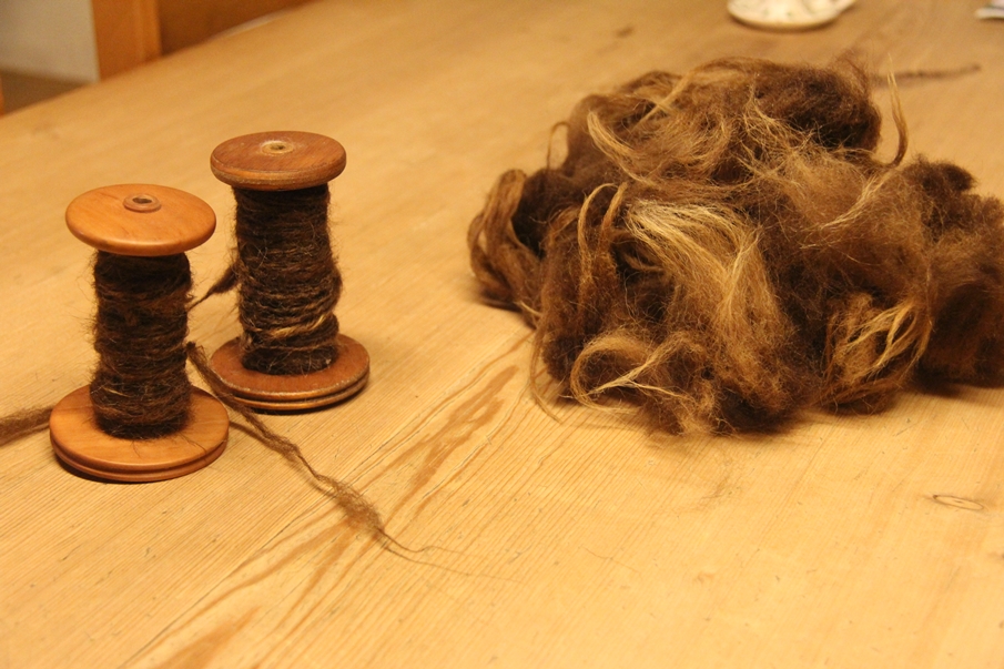 Zum ersten Mal verspinne ich die Wolle direkt nach dem Scheren, einfach gerade so, wie ich sie abgeschnitten habe. Und erlebe dabei, dass das Spinnen so viel einfacher ist. Alle Haare schauen bereits in die richtige Richtung, und können so von der drehenden Wolle sehr gut aufgenommen werden.